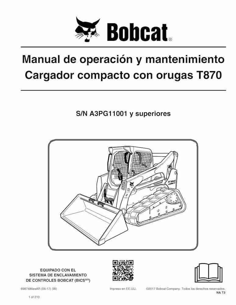 Bobcat T870 cargador compacto de orugas pdf manual de operación y mantenimiento ES