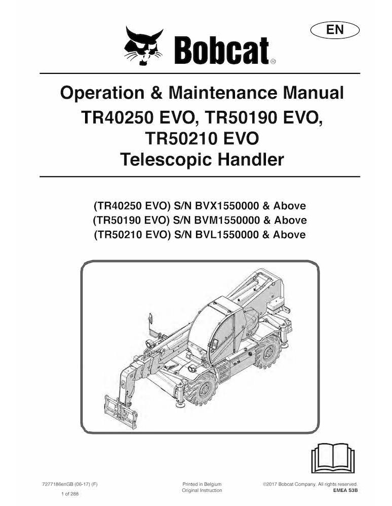 Bobcat TR40250 EVO, TR50190 EVO, TR50210 EVO manipulador telescópico pdf manual de operación y mantenimiento