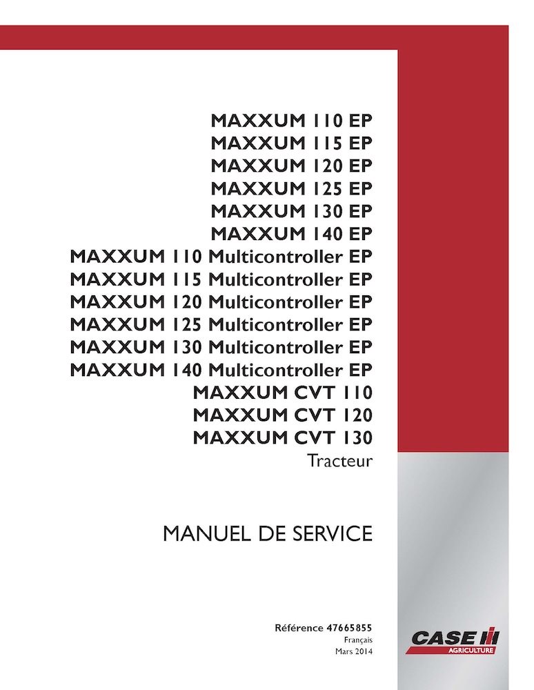 Manual de servicio del tractor Case MAXXUM 110, 115, 120, 125, 130, 140 EP - Multicontroller - CVT (PDF) FR (47665855)