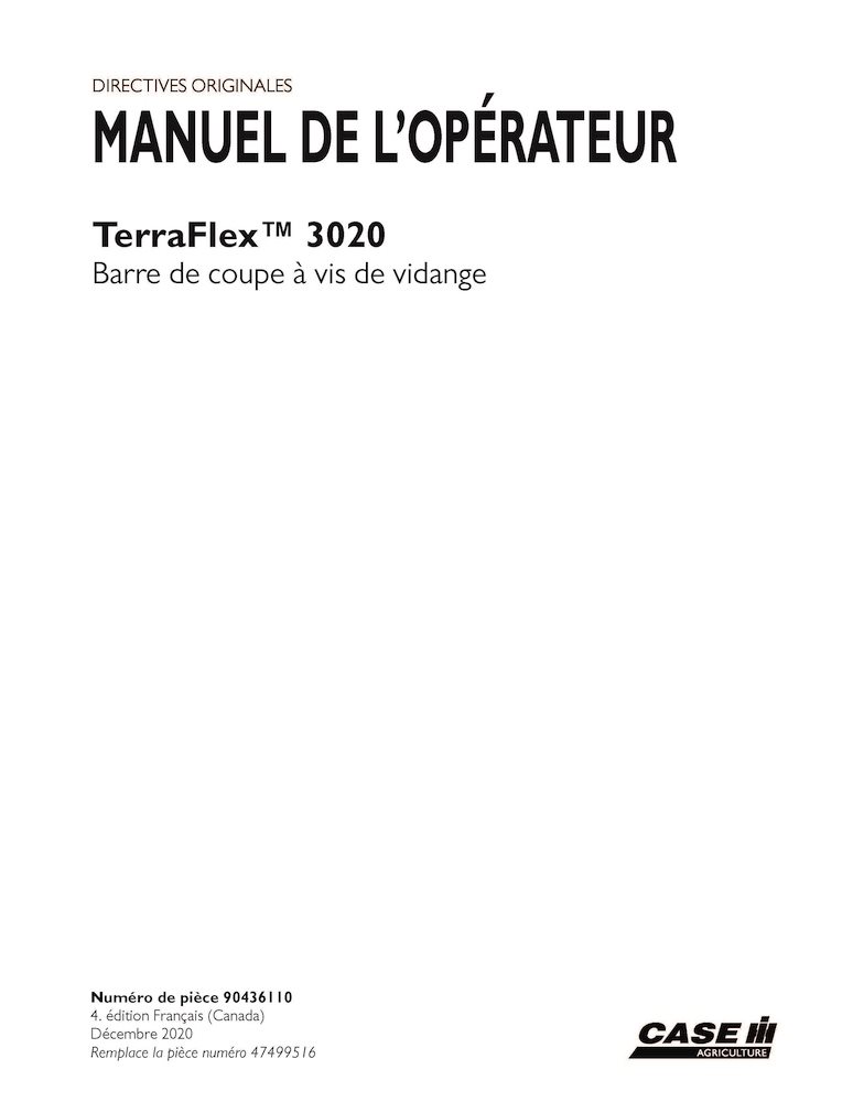Manual del operador del cabezal de barrena Case TerraFlex 3020 (PDF, FR) (90436110)