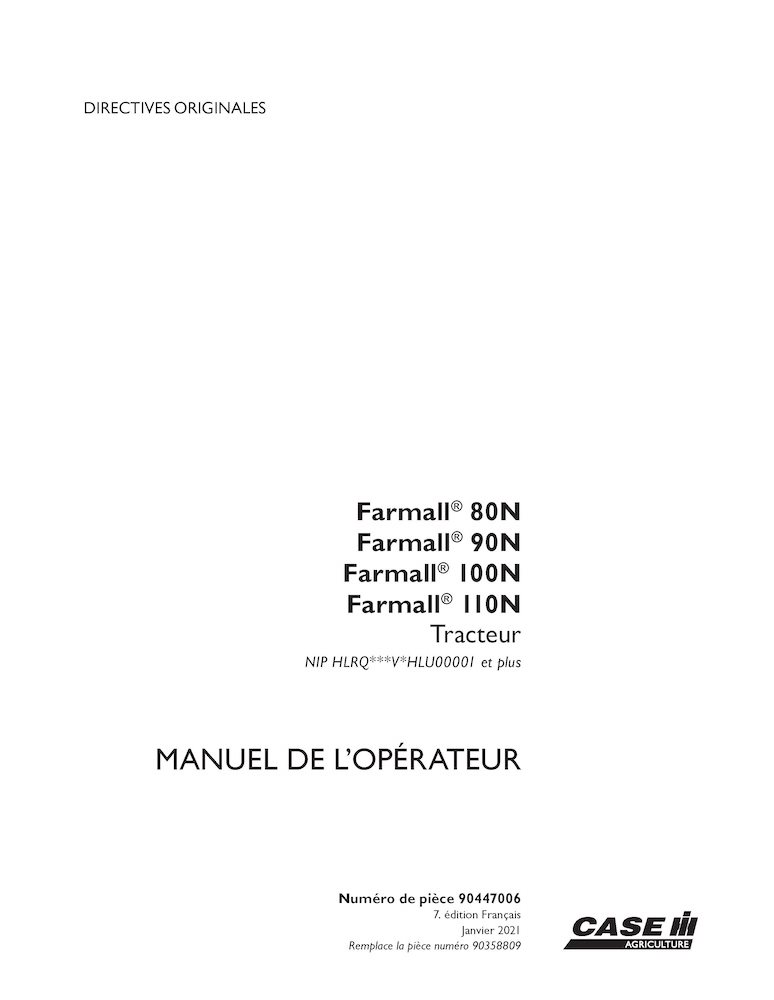 Manual del operador del tractor Case Farmall 80N-110N PIN HLRQ***V*HLU00001 (PDF) FR (90447006)