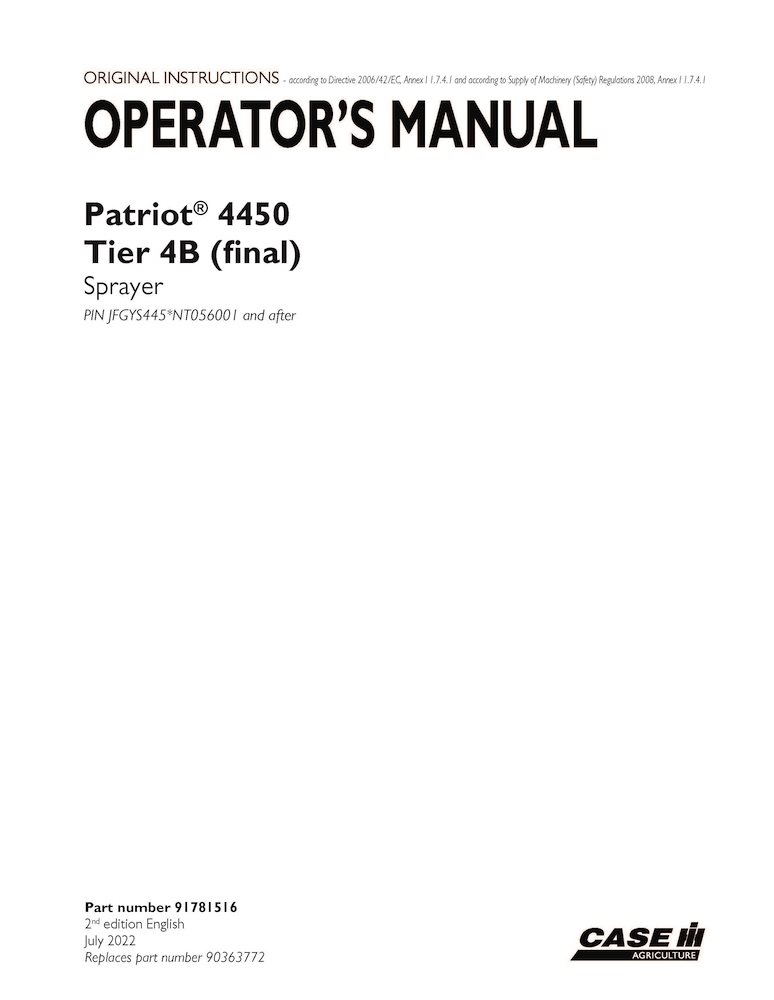 Manual del operador del pulverizador Case Patriot 4450 PIN xNT056001 (PDF) (91781516)