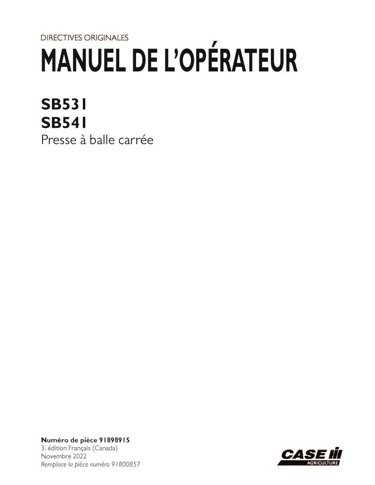 Manual del operador de la empacadora Case SB531, SB541 (PDF) (91898915)
