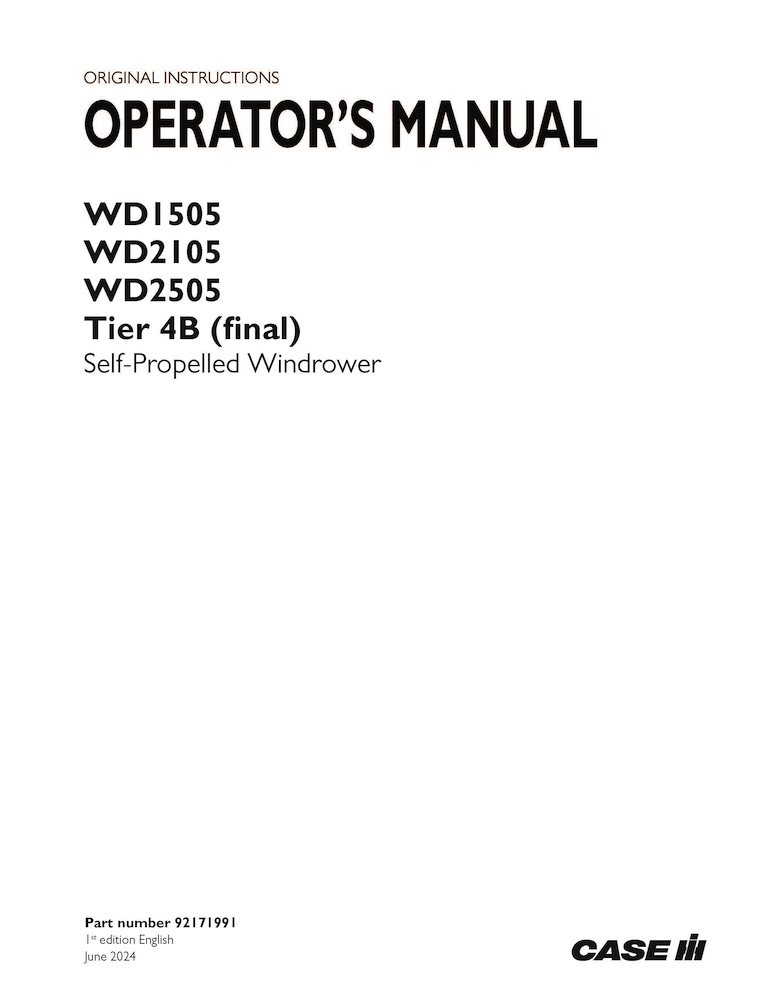 Manual del operador de las segadoras hileradoras Case WD1505, WD2105 y WD2505 (PDF, 92171991)