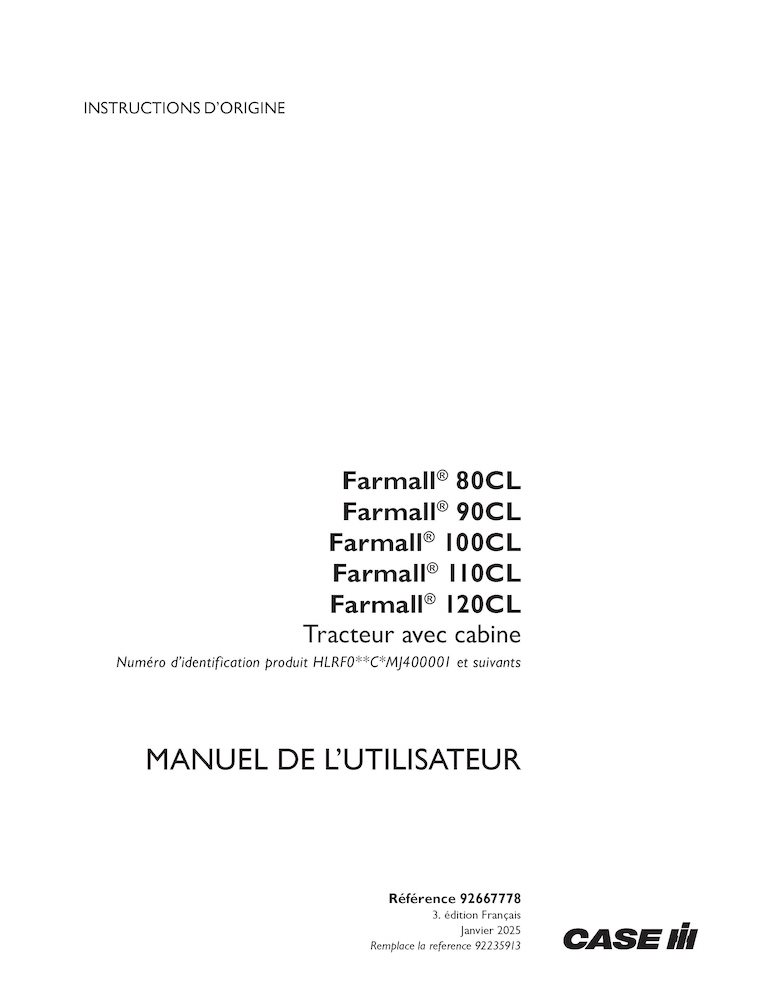 Manual del operador del tractor Case Farmall 80CL, 90CLm, 100CL, 110CL, 120CL (PDF) FR (92667778)