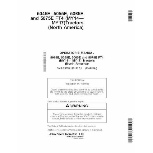 John Deere 5045E, 5055E, 5065E y 5075E FT4 (MY14-MY17) manual del operador del tractor pdf