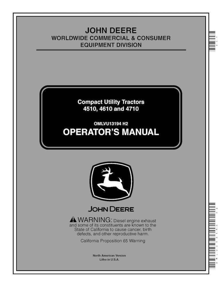 Manual del operador del tractor utilitario compacto John Deere 4510, 4610 y 4710 (PDF) (OMLVU13194)
