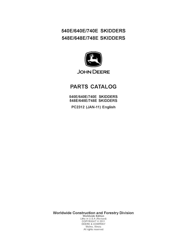 Catálogo de piezas en PDF de los skidders John Deere 540E, 640E, 740E, 548E, 648E y 748E (PC2312)