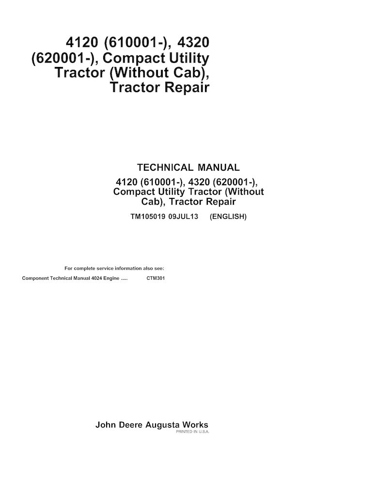 Manual técnico en PDF del tractor utilitario compacto John Deere 4120 y 4320 (TM105019)