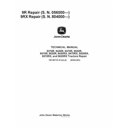 Manual técnico de reparación en PDF de los tractores John Deere 9370R- 9620R (SN 56000-), 9420RX-9620RX (SN 80400-)