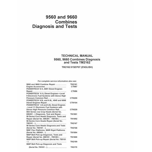 Manual de diagnóstico y pruebas (PDF) de las cosechadoras John Deere 9560 y 9660 (TM2162)