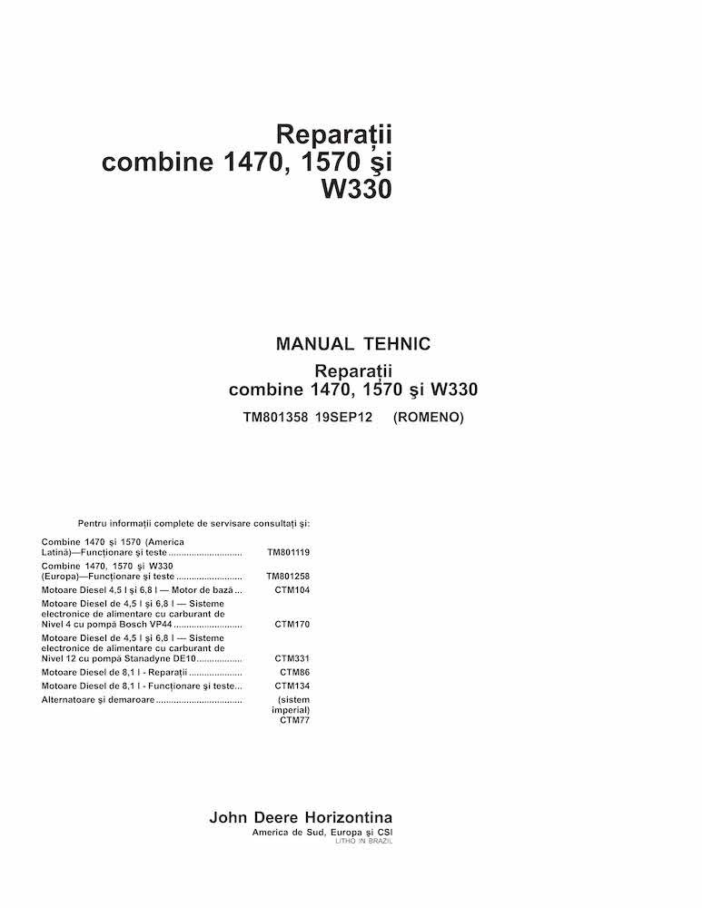 John Deere 1470, 1570, W330 combinar manual técnico de reparación pdf RO