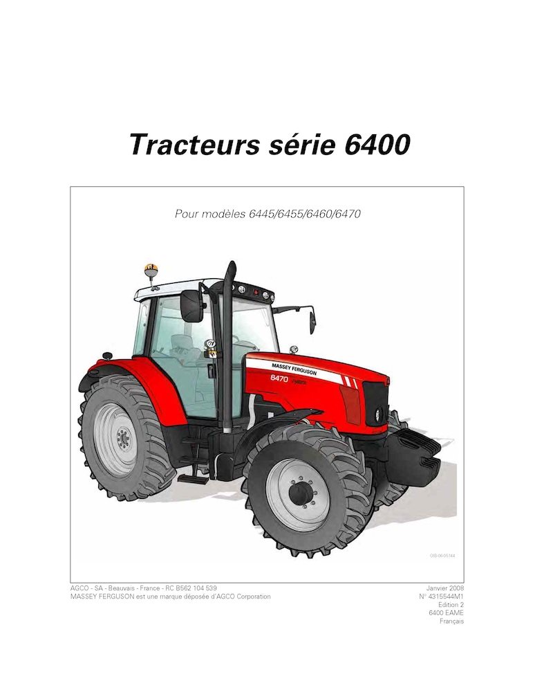 Manual del operador del tractor Massey Ferguson 6445, 6455, 6460, 6470 TIER 3 DYNA-6 (PDF, FR) (4315544M1)
