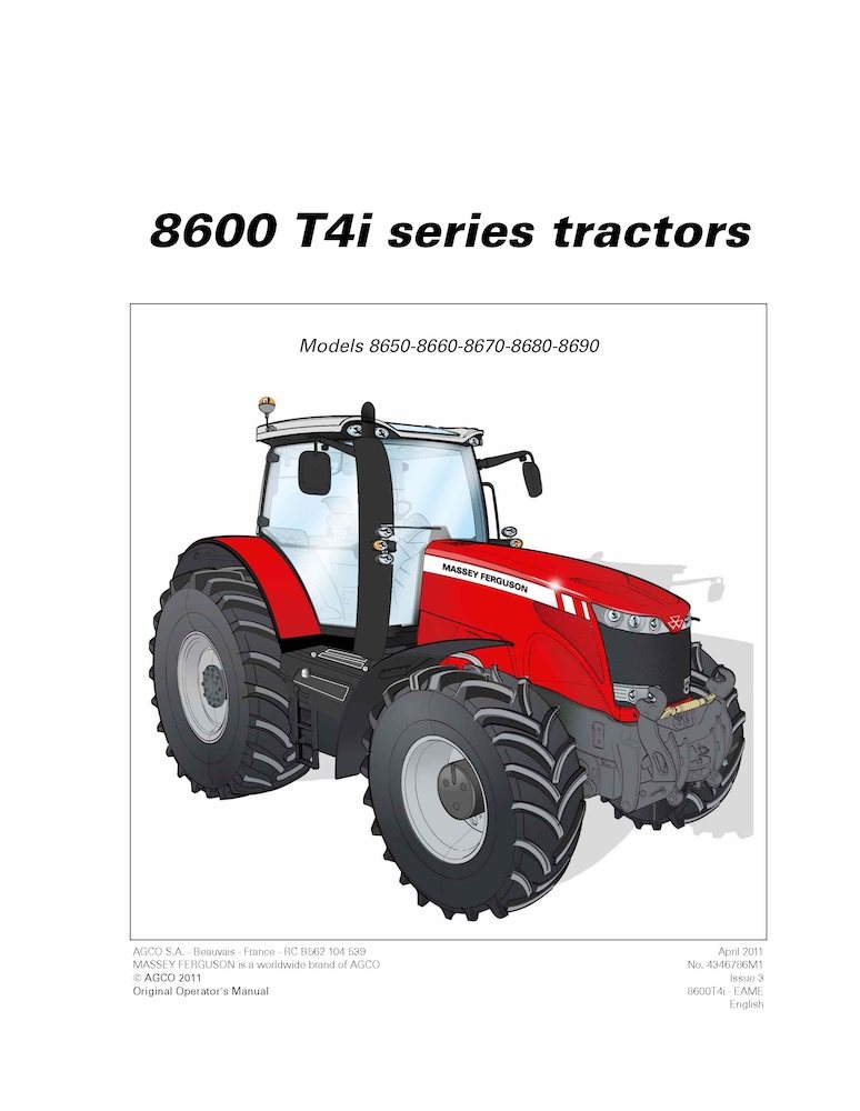 Manual del operador del tractor Massey Ferguson 8650, 8660, 8670, 8680, 8690 TIER 4i (PDF, 4346786M1)