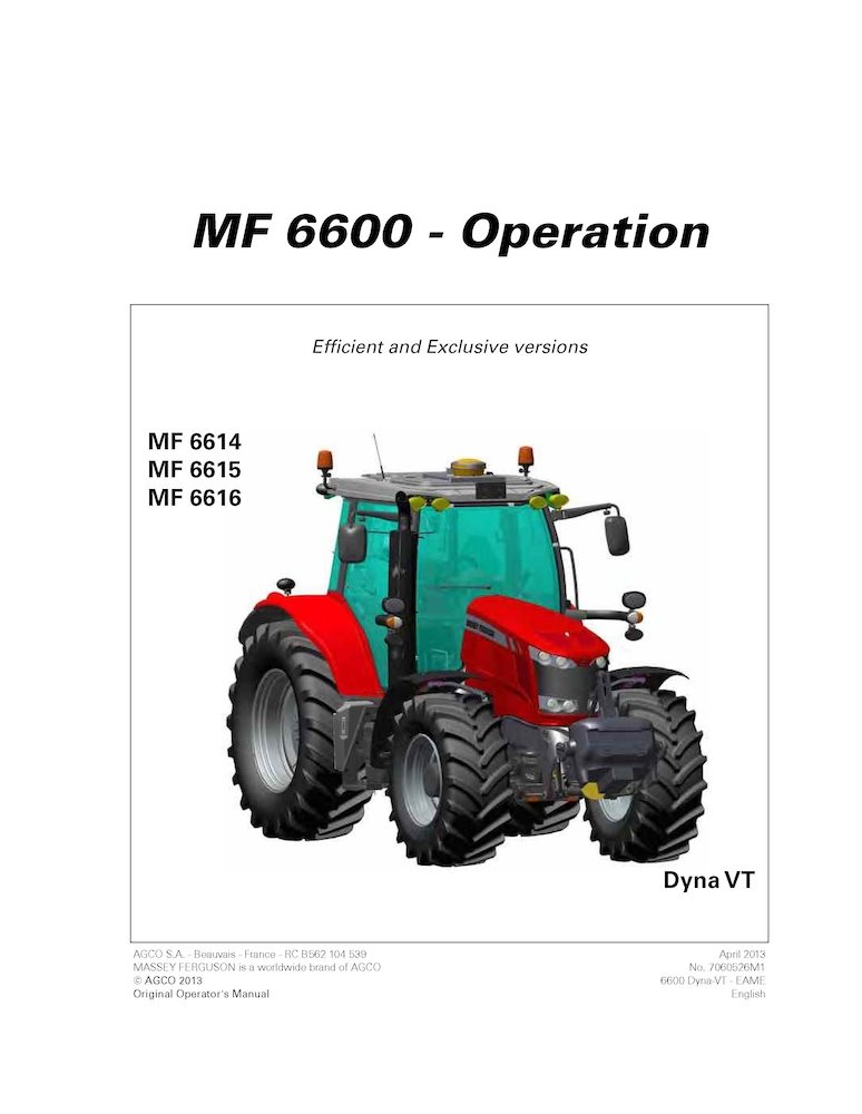 Manual del operador del tractor Massey Ferguson 6614, 6615, 6616 DYNA-VT Efficient y Exclusive (PDF) (7060526M1)