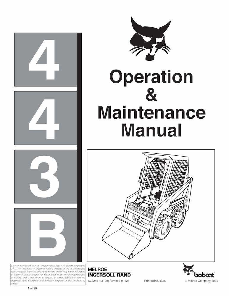 Bobcat 443B skid loader pdf manuel d'utilisation et d'entretien.
