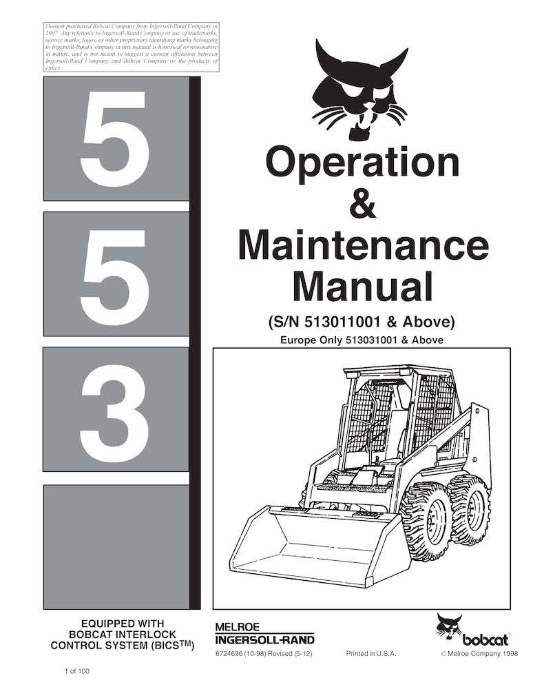 Bobcat 553 skid loader pdf manuel d'utilisation et d'entretien.