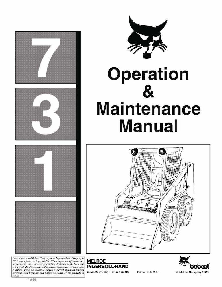 Bobcat 731 skid loader pdf manuel d'utilisation et d'entretien