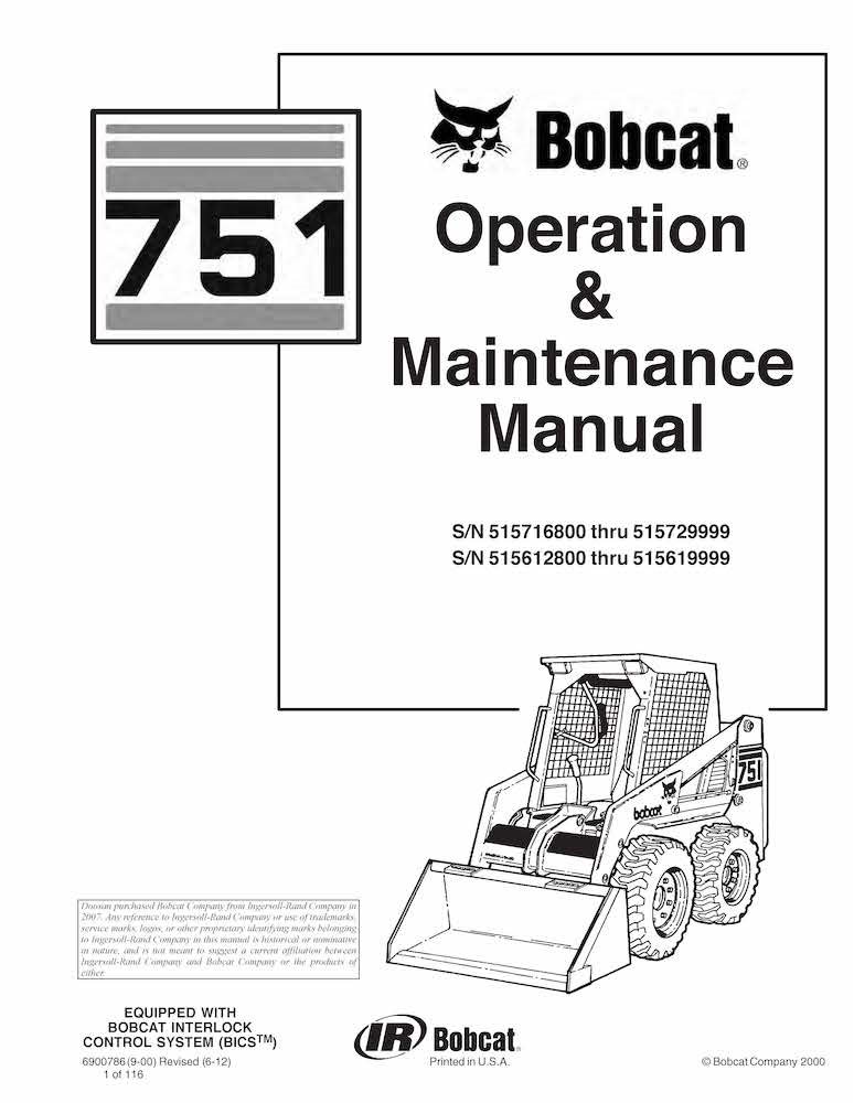 Bobcat 751 skid loader pdf manuel d'utilisation et d'entretien