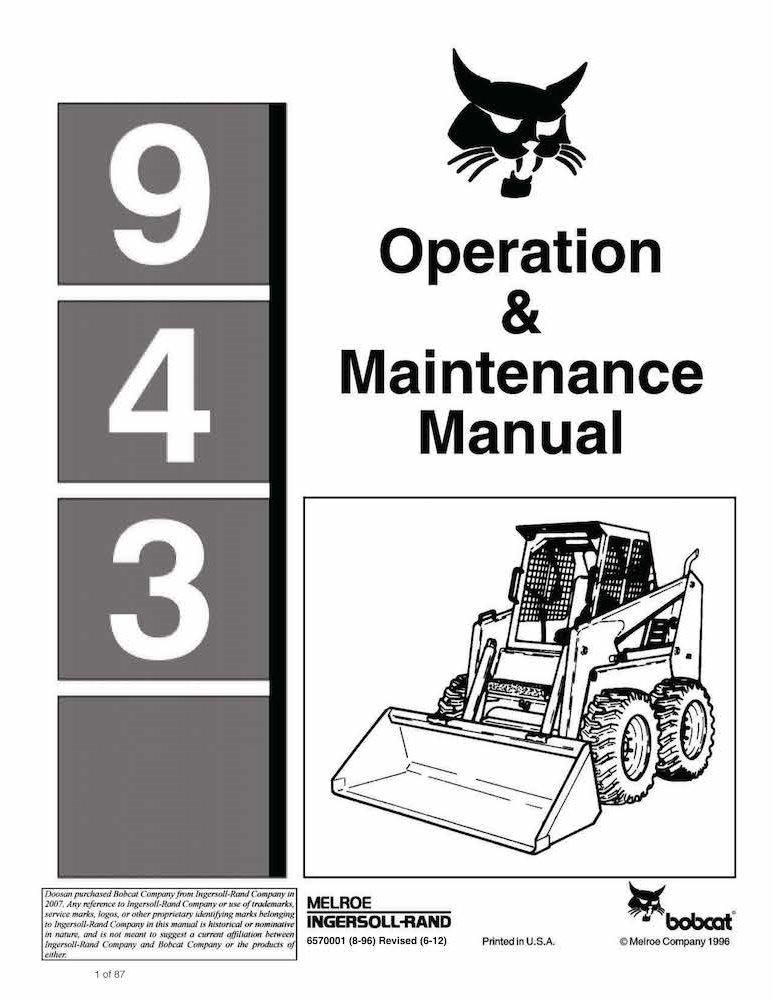 Bobcat 943 skid loader pdf manuel d'utilisation et d'entretien