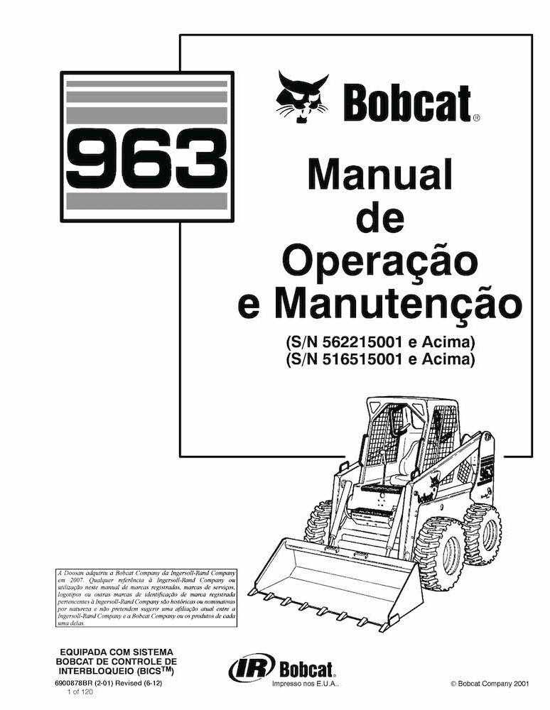 Bobcat 963 chargeur compact pdf manuel d'utilisation et d'entretien PT