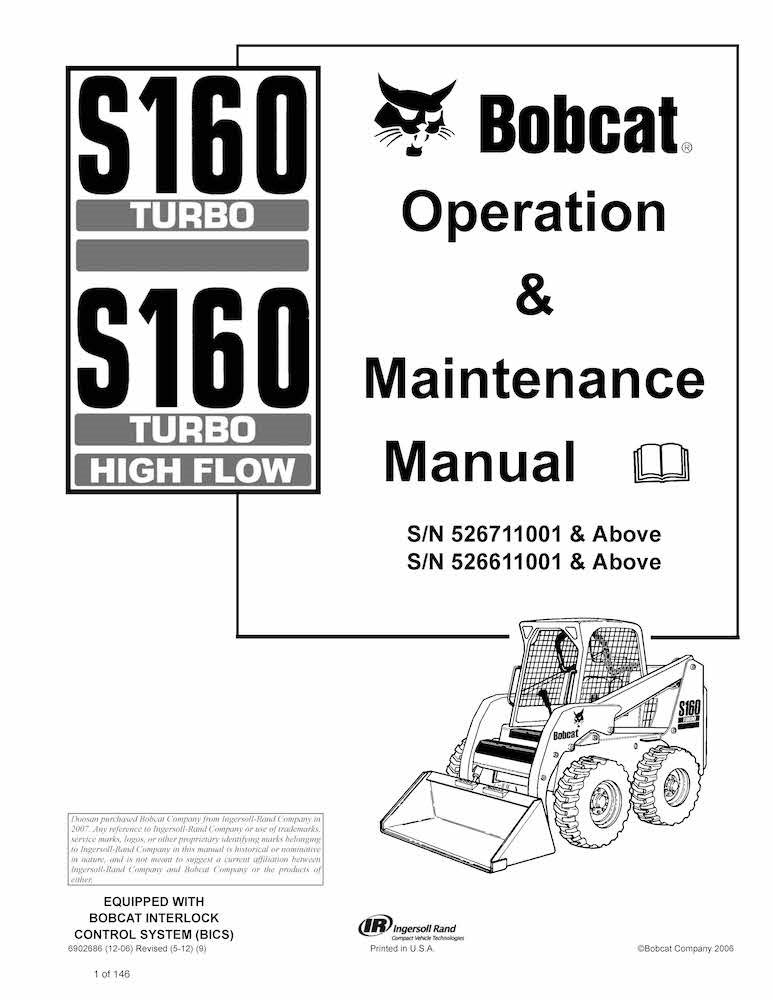 Bobcat S160, S160H chargeuse compacte pdf manuel d'utilisation et d'entretien