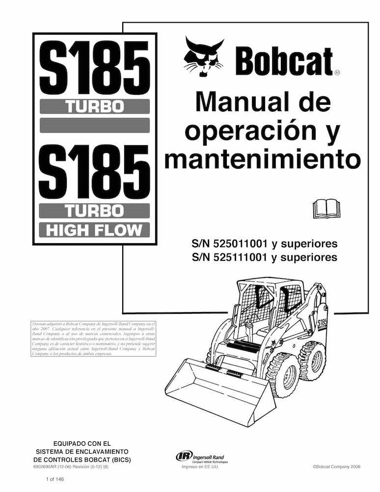 Manuel d'utilisation et d'entretien pdf de la chargeuse compacte Bobcat S185 ES