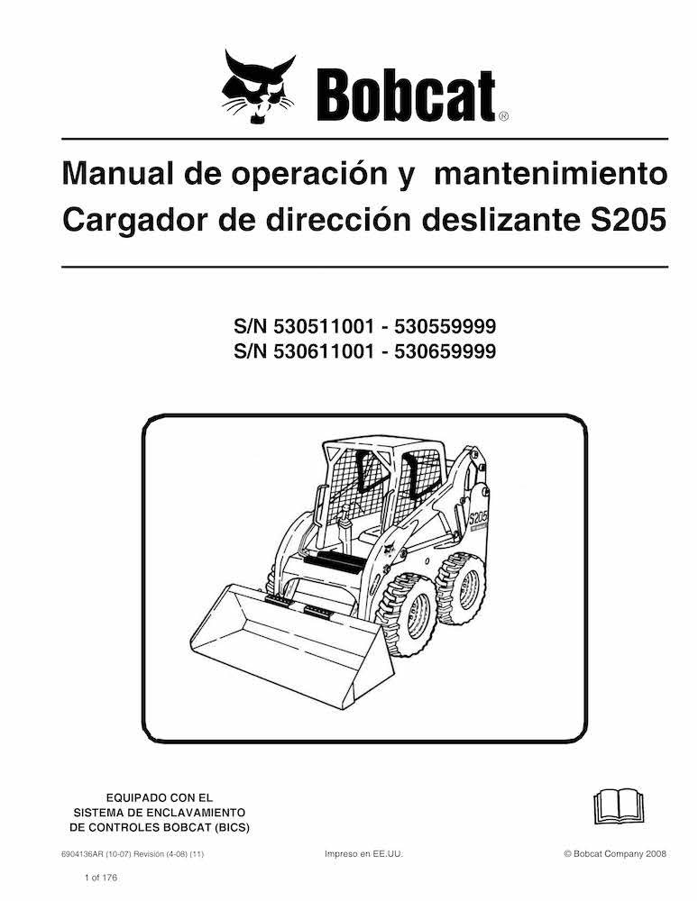 Manuel d'utilisation et d'entretien pdf de la chargeuse compacte Bobcat S205 ES