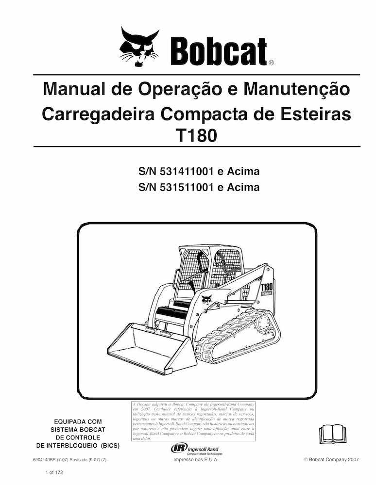 Manuel d'utilisation et d'entretien pdf de la chargeuse compacte sur chenilles Bobcat T180 PT