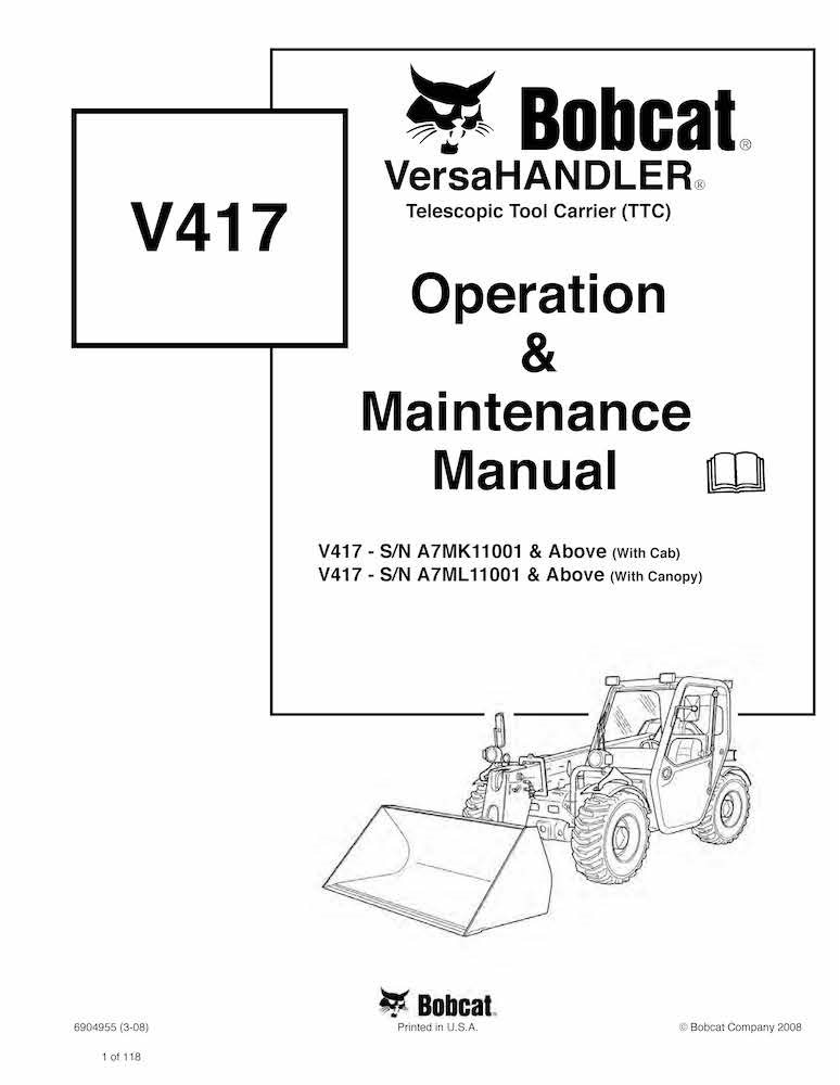 Bobcat V417 porte-outils télescopique pdf manuel d'utilisation et d'entretien