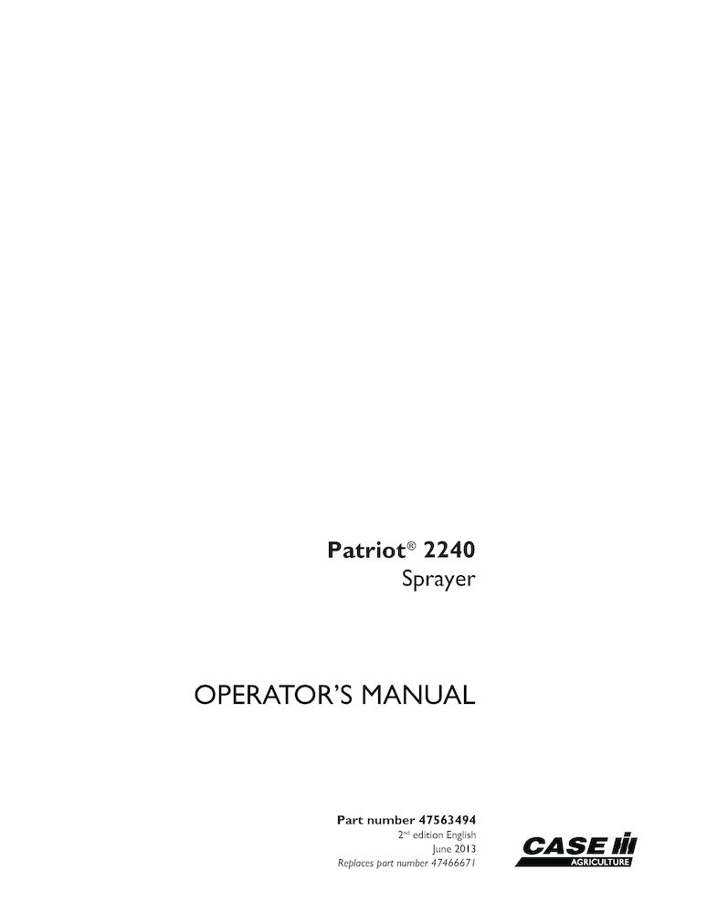 Manuel d'utilisation du pulvérisateur Case Patriot 2240 (47563494)