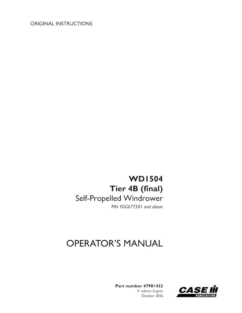 Manuel d'utilisation de l'andaineuse Case WD1504 Tier 4b PIN YGG677501 (pdf) (47981432)