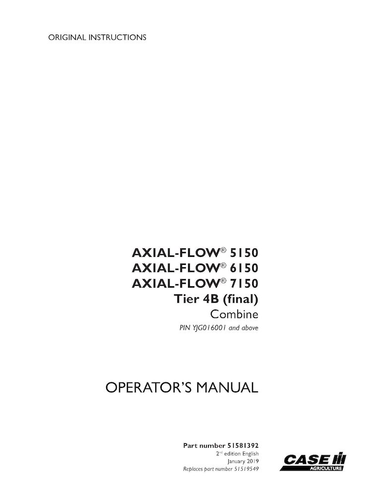 Manuel d'utilisation PDF pour la combinaison Case Axial Flow 5150, 6150, 7150 Tier 4B PIN YJG016001 (51581392)