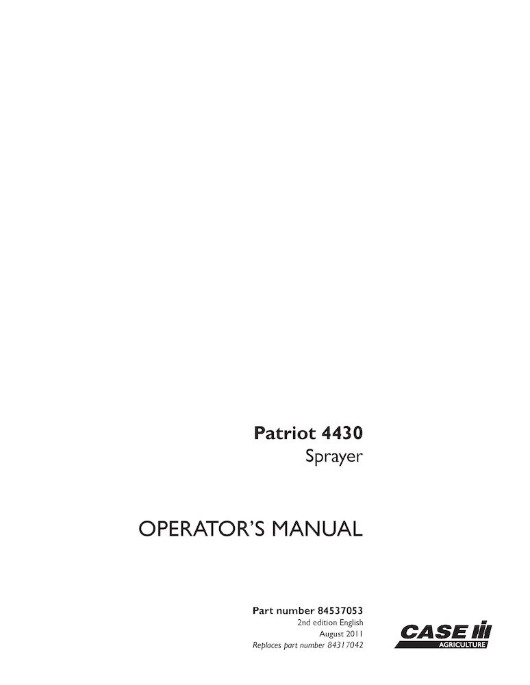 Manuel d'utilisation du pulvérisateur Case Patriot 4430 (84537053)
