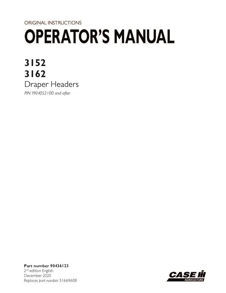Boîtier 3152, 3162 PIN YKH052100 - Manuel d'utilisation PDF de l'en-tête Draper (90436123)
