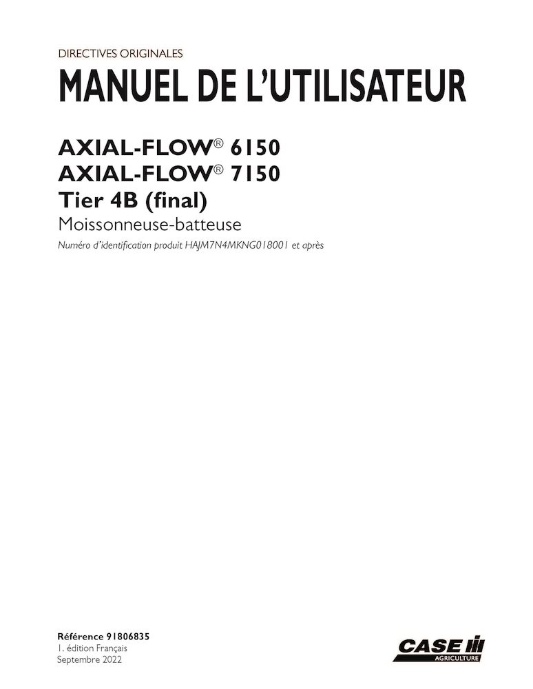 Manuel d'utilisation PDF pour la moissonneuse-batteuse Case Axial Flow 6150, 7150 Tier 4B PIN HAJM7N4MKNG018001 (FR) (91806835)