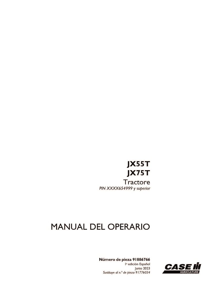 Manuel d'utilisation PDF du tracteur Case JX55T, JX75T PIN XXXX654999 (91886766)
