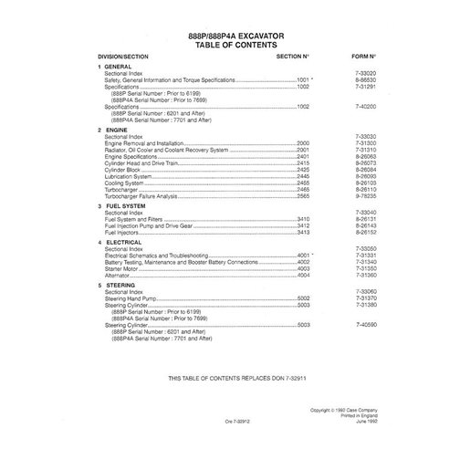 Manuel d'entretien pdf de l'excavatrice Case 888P, 888P4A
