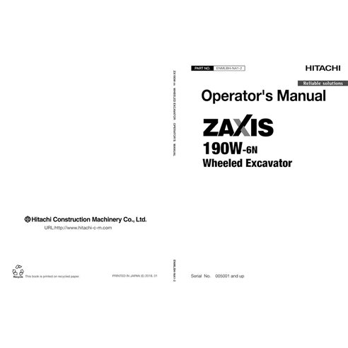 Hitachi ZX 190W-6N manuel d'utilisation de l'excavatrice pdf
