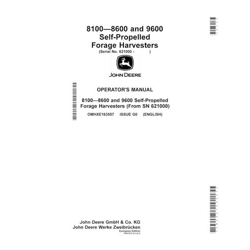 Manuel de l'opérateur pdf de l'ensileuse John Deere 8100, 8200, 8300, 8600, 8400, 8500, 9600 (G0)