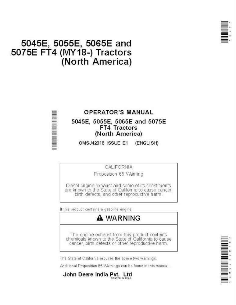 Le manuel de l'opérateur pour les tracteurs 5045E, 5055E, 5065E et 5075E FT4 (MY18-) est disponible en téléchargement instantané après l'achat à tout moment. Il peut être téléchargé et visualisé sur n'importe quel appareil. Téléchargez gratuitement le fichier PDF d'aperçu en utilisant le lien dans l'onglet Pièces jointes
