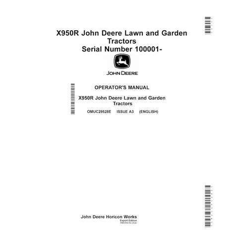 Manuel d'utilisation du tracteur à gazon John Deere X950R au format PDF