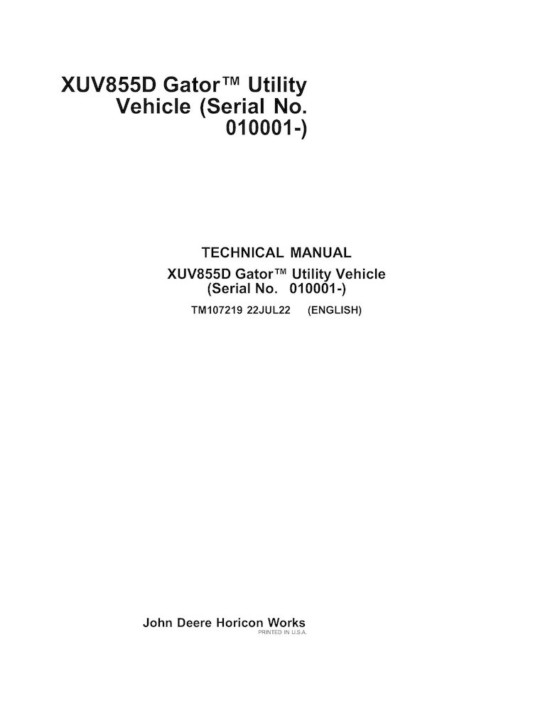 Manuel technique PDF du véhicule utilitaire John Deere XUV 855D Gator (TM107219)