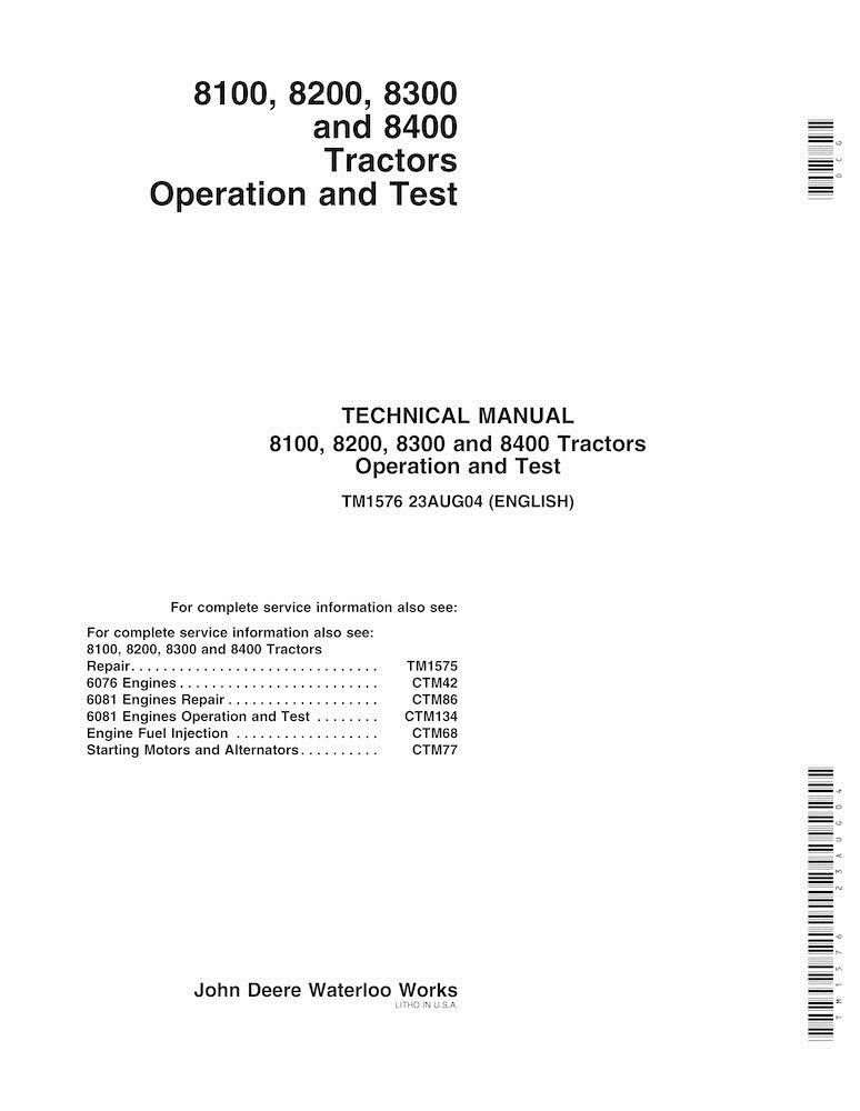 Manuel technique d'utilisation et de test des tracteurs John Deere 8100, 8200, 8300, 8400 au format PDF