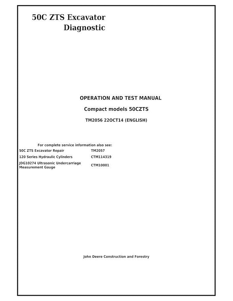 Manuel technique d'utilisation et de test de la pelle compacte John Deere 50C ZTS au format PDF