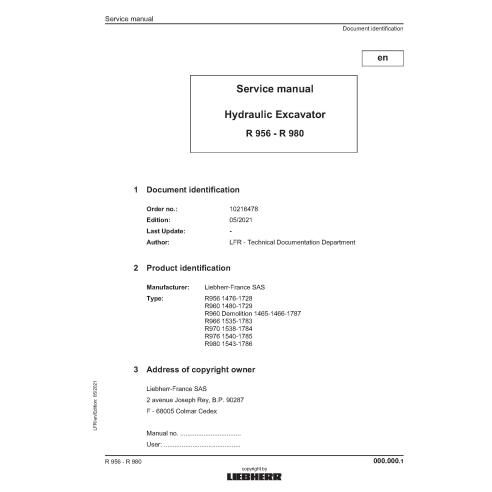 Manuel d'entretien des pelles hydrauliques Liebherr R956, R960, R966, R970, R976, R980 pdf