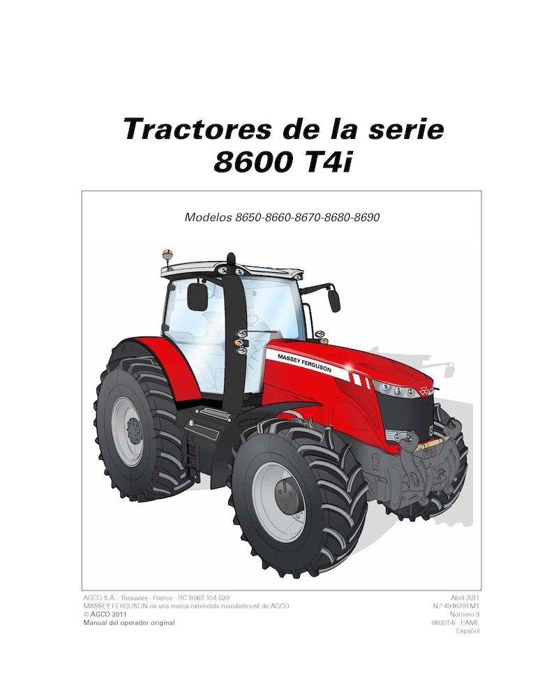 Manuel d'utilisation PDF du tracteur Massey Ferguson 8650, 8660, 8670, 8680, 8690 TIER 4i (4346791M1)