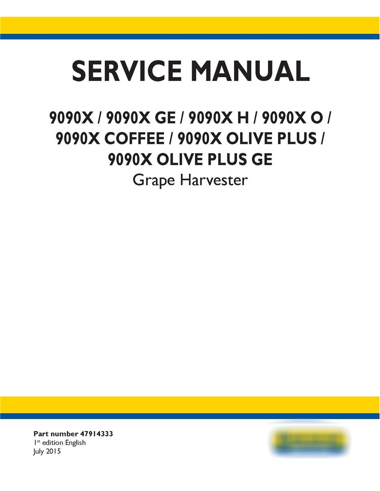 Manuel d'entretien New Holland 9090X / 9090X GE / 9090X H / 9090X O / 9090X COFFEE / 9090X OLIVE PLUS / machine à vendanger