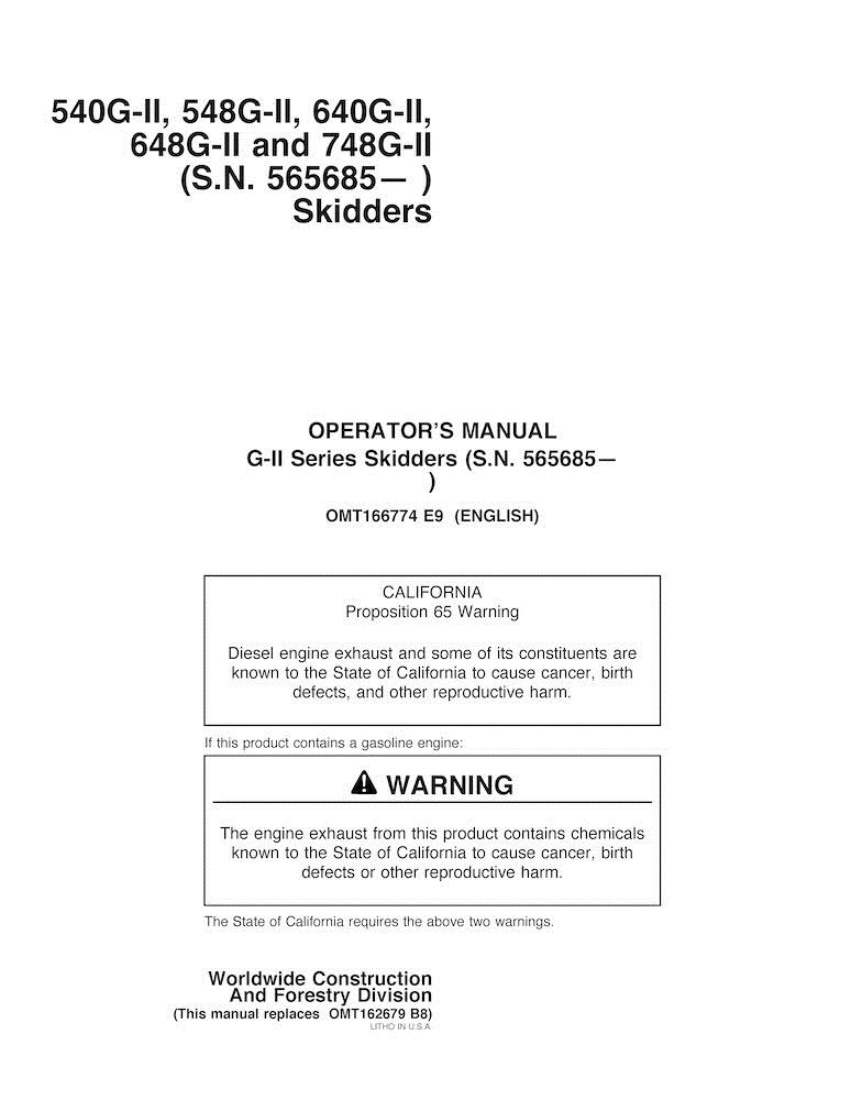 John Deere 540G-II, 548G-II, 640G-II,648G-II and 748G-II 565685- skid loader pdf operator's manual