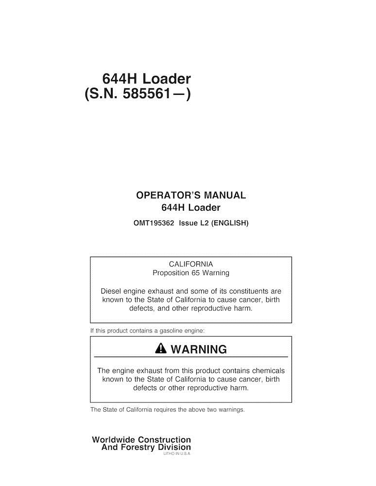 JD-OMT195362 John Deere 644H, 644MH (SN 585561-) wheel loader pdf operator's manual